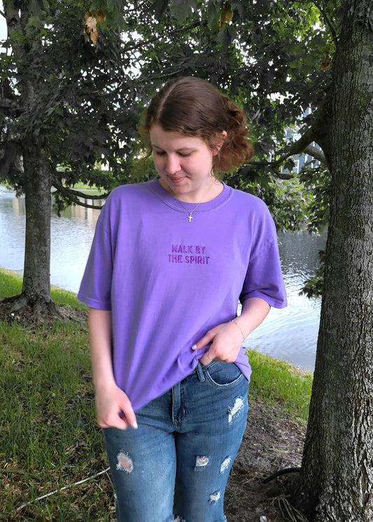 WALK BY THE SPIRIT Embroidered Tee - Purple